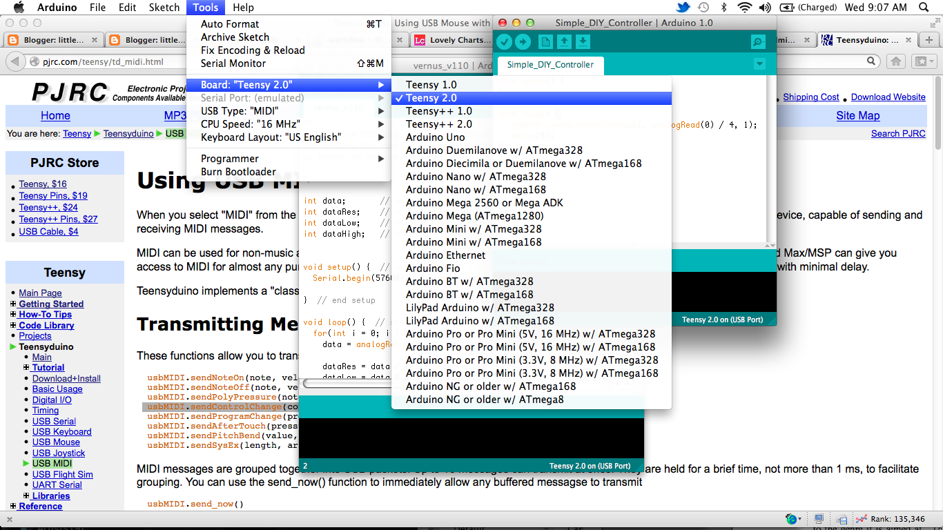 Also, go to Tools > USB Type and choose MIDI.This sets the Teensy board into MIDI mode. Now, go to File > Upload Sketch and wait for the Arduino software to upload your code to the Teensy board. The Teensy loader will launch in the background.