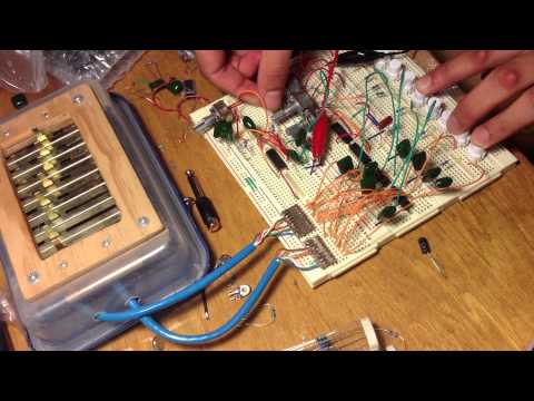 A polyphonic bass organ, made using a set of 40106, 4066 and 4049 logic chips.