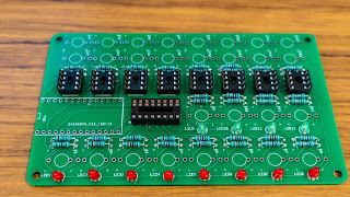 Place and solder the 8 x 8-pin IC sockets. In the picture, the indent is oriented towards the upper edge of the picture.